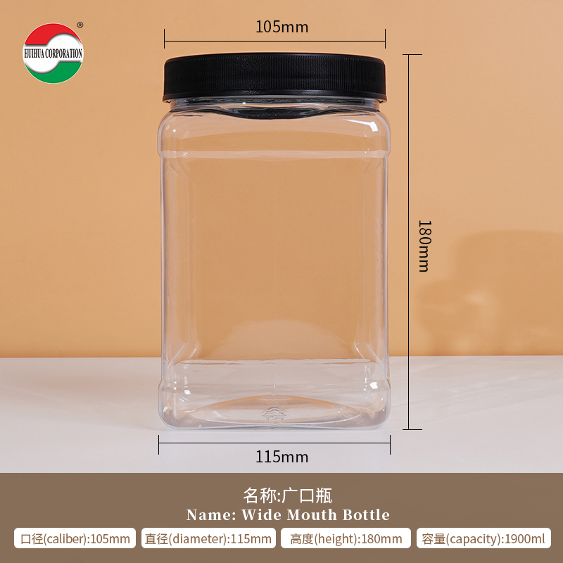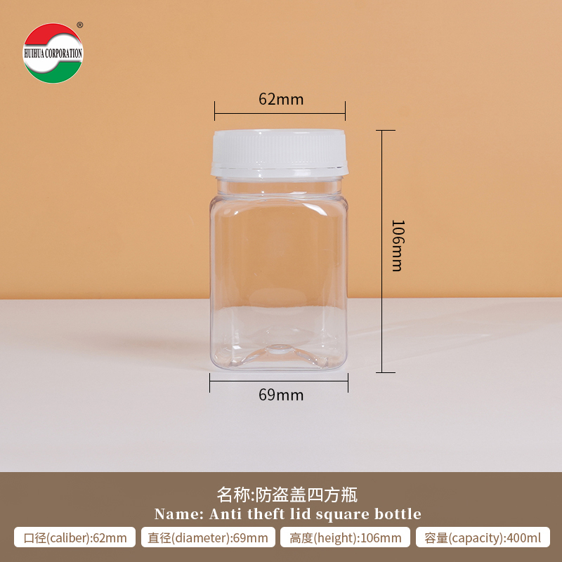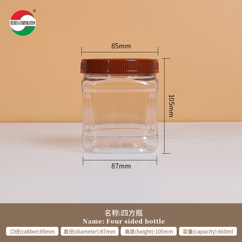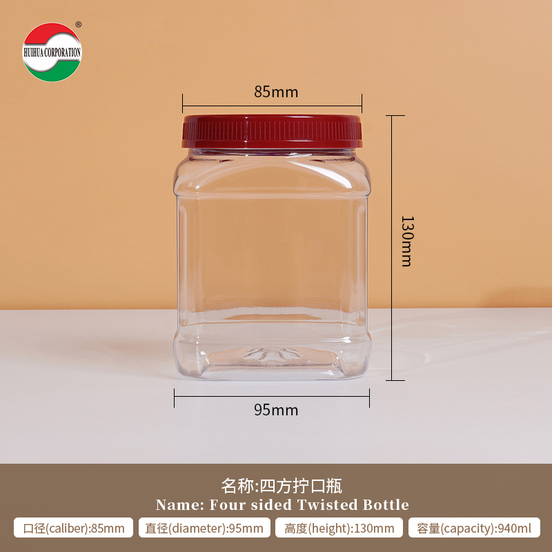 Τετράγωνες κονσέρβες Διαφανή πλαστικά βάζα με καπάκια Στροφή επάνω προσαρμοσμένες ετικέτες Συσκευή Μεγάλο πλαστικό βάζο