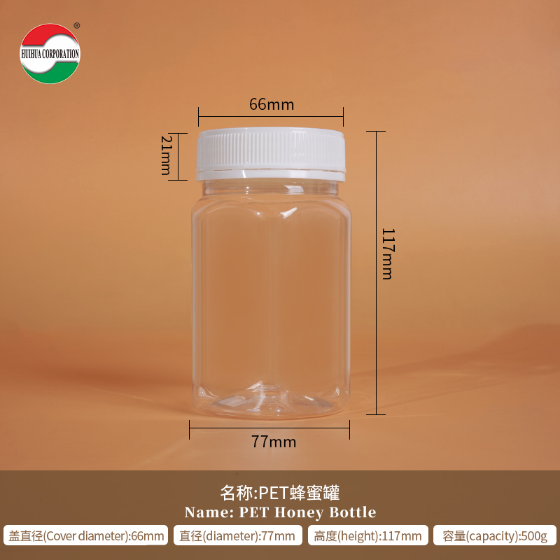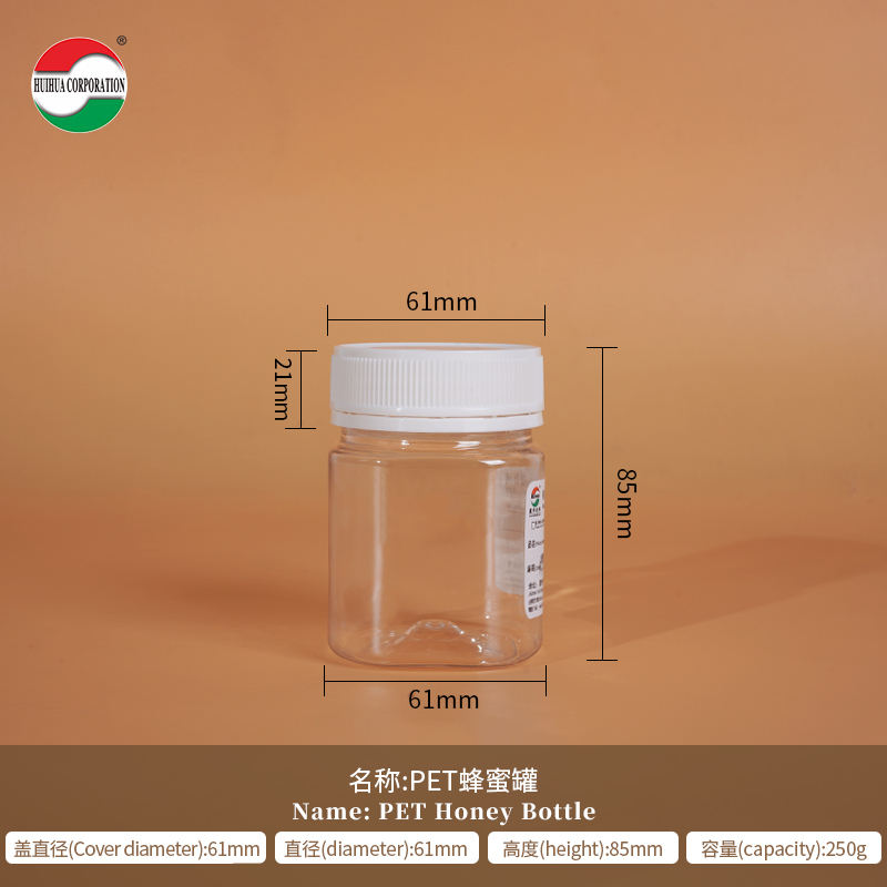 Προσαρμοσμένο διαυγές πλαστικό κύλινδρο μπουκάλι μέλι PET με βρόχιο κάλυμμα για περιβαλλοντικά φιλικά και τροφικά προϊόντα υγείας συσκευασία